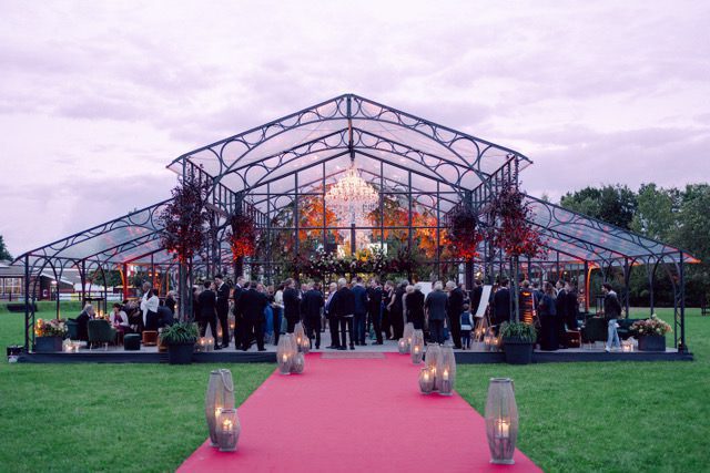 Bei dieser Traumhochzeit im Hamburger Umland wurde jedoch keiner der zwei Optionen gewählt und nichts sollte dem Zufall überlassen werden. Die Lösung: ein Orangerie-Glaszelt, dass ein Gefühl von „draußen“ und Freiheit vermittelt, aber gleichzeitig vor Regen und Wind schützt. Die Event Architekten haben sich auf Zelte, Orangerien für Luxushochzeiten und Veranstaltungen in ganz Europe spezialisiert.