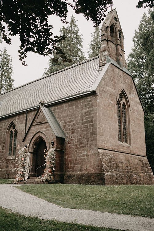 Die Trauung fand in der englischen Kirche des Kurparks Bad Wildbad statt. Neben der Familie von Katharina waren auch weitere bekannte Gesichter vor Ort. So natürlich auch Katharinas Schwester Anna-Maria Damm als Trauzeugin. Neben einem großen Mammutbaum gelegen erstrahlt die ab 1864 errichtete Kirche für die Hochzeit von Katharina Damm. Auch hier wurden unseren Lucy Wire Stühlen eine bedeutende Aufgabe zu teil – wer sieht sie?