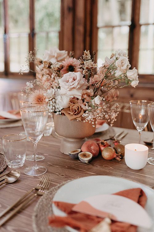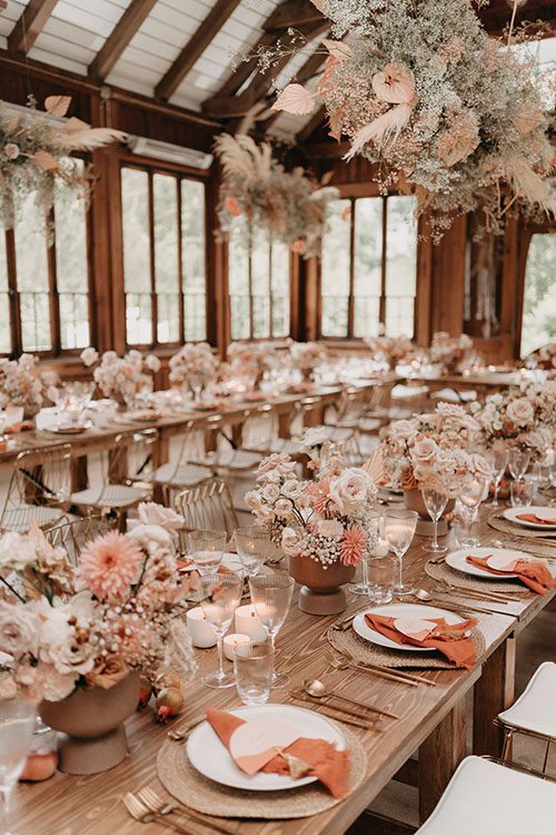 Die Floristin stammt von Blume Exklusiv in Sandhausen und Oftersheim. Mit großer Liebe zum Detail und kleinen, einzigartigen Besonderheiten lässt Patricia Blumenwünsche Wirklichkeit werden. Mit vielen Terracotta Tönen in der Dekoration und dem Brautstrauß wurde Katharina Damms Hochzeit floral umrahmt.