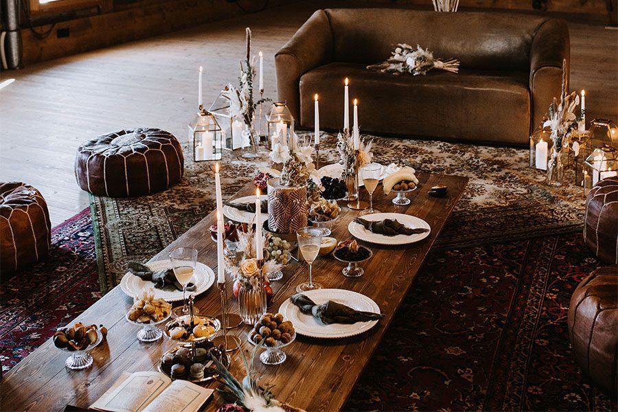 Die rustikal elegante Eventscheune Lafette erstrahlte beim Styled Shoot in orientalischer Hochzeitsdekoration. Ein echtes Highlight ist unser mietbarer LowTable, der genau die richtige Atmosphäre generiert.