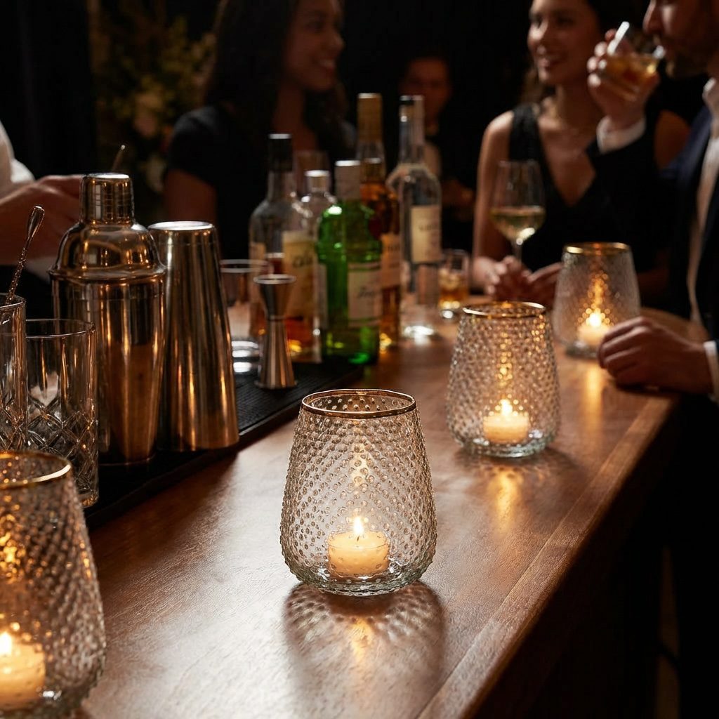 Setze mit unserem 13 cm hohen Windlicht im feinen Punktmuster stilvolle Lichtakzente auf Deinem Event. Das größere Format sorgt für besonders warmes, einladendes Kerzenlicht, das Tische, Buffets oder kleine Dekorationen eindrucksvoll in Szene setzt. Der edle Goldrand verleiht dem Windlicht einen Hauch von Glamour und macht es zu einem eleganten Blickfang, während das zarte Punktmuster eine moderne, verspielte Note hinzufügt.