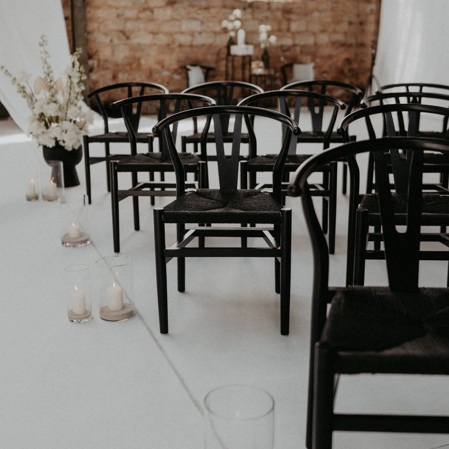 Mieten Sie jetzt den Wishbone Stuhl aus Holz Schwarz und verleihen Sie Ihrem Event eine unverwechselbare Atmosphäre voller Stil, Komfort und Eleganz!