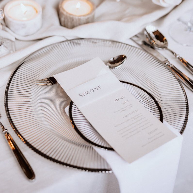 Miete die Glasteller ganz unkompliziert und genieße den Vorteil eines hochwertigen Looks ohne aufwändige Anschaffung oder Reinigung. So kannst du dich voll und ganz auf deine Gäste konzentrieren – stilvoll und professionell bis ins kleinste Detail.