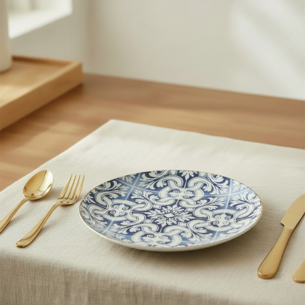 Typisch für portugiesische Porzellantradition verbindet der Teller Funktionalität mit schlichter Eleganz – perfekt für den Alltag wie auch für festliche Tafeln. Seine glatte Oberfläche und das ausgewogene Design machen ihn zu einem vielseitigen Begleiter für jede Tischkultur.