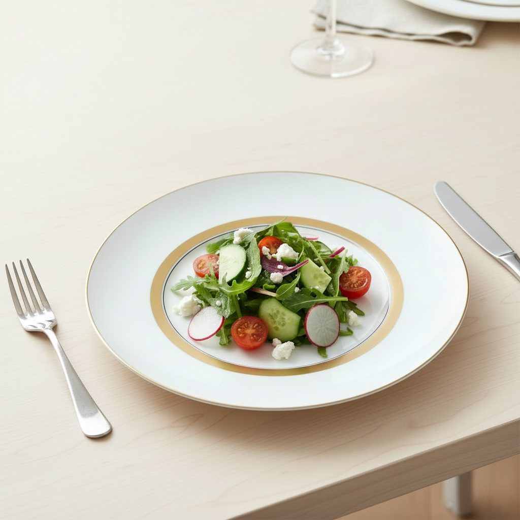 Die glänzende Oberfläche des Porzellans unterstreicht die hochwertige Verarbeitung und sorgt dafür, dass der Teller nicht nur funktional, sondern auch ein echter Blickfang ist. Ob bei festlichen Anlässen, Dinnerpartys oder im gehobenen Alltag – dieser Teller macht jedes Gericht zu einem besonderen Erlebnis. Dank seiner robusten und langlebigen Qualität eignet er sich hervorragend für den täglichen Gebrauch, ohne an Eleganz zu verlieren.
