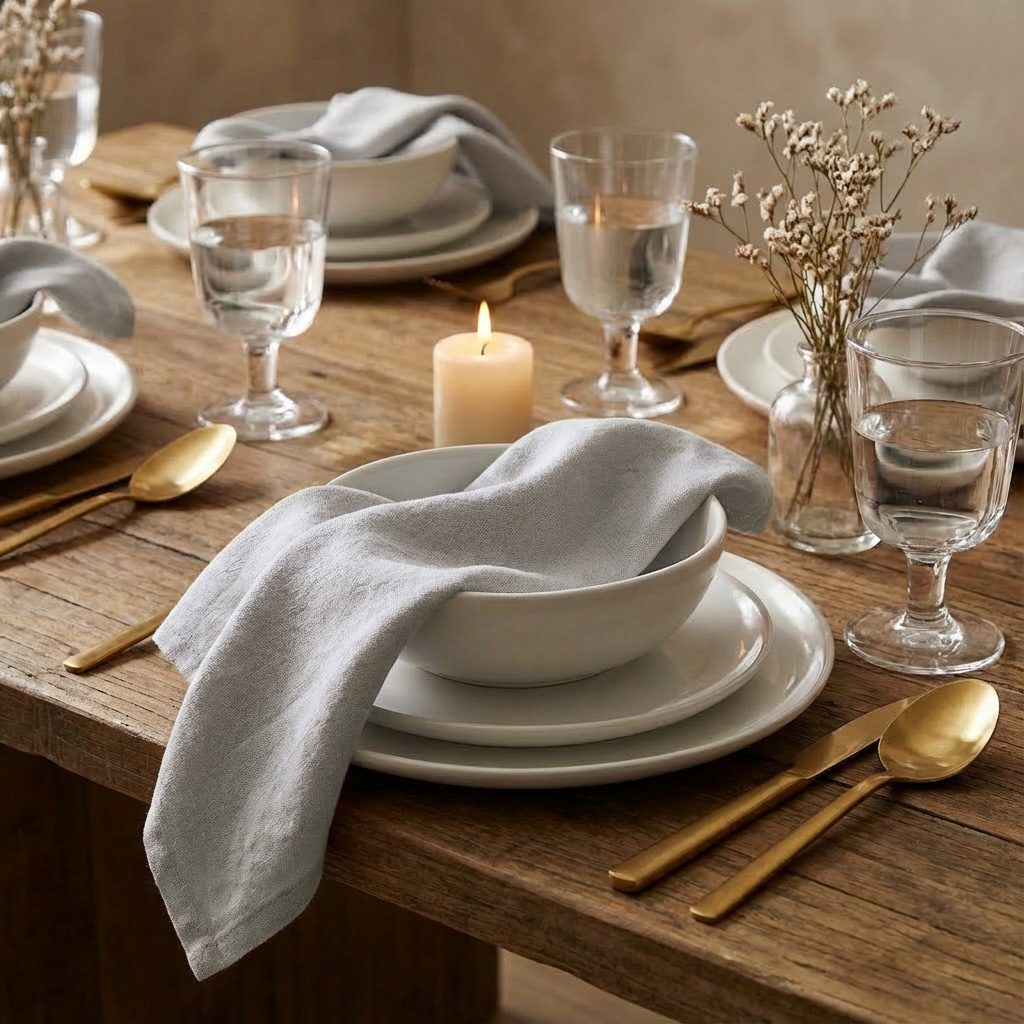 Die Serviette besteht aus hochwertigem Leinen und besticht durch ihre angenehme Haptik und den lässig-eleganten Look. Ideal kombinierbar mit goldenen Details, Naturtönen oder minimalistischen Konzepten.