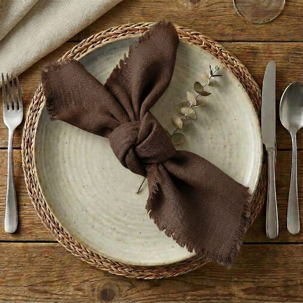 Die Musselinserviette in Braun verleiht deiner Tischdekoration eine warme, erdige Note mit stilvoller Natürlichkeit. Der weiche, luftige Musselinstoff aus Baumwolle bringt Struktur und Leichtigkeit in jedes Tischkonzept – ob rustikal, boho oder modern-elegant.