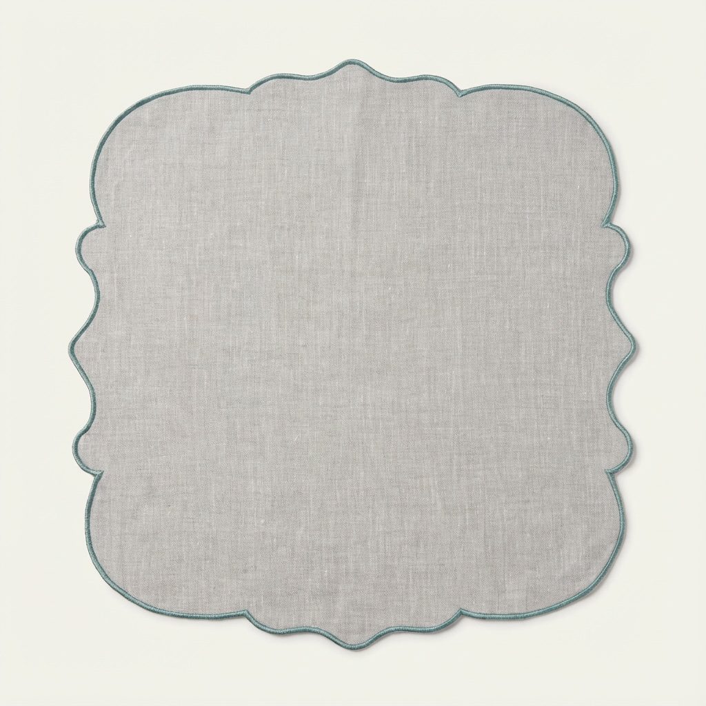 Die Leinenserviette Scalloped in Grau bringt eine subtile, aber elegante Note auf deinen Tisch. Der sanfte Grauton und die filigranen, gewellten Ränder (Scalloped Edge) machen diese Serviette zu einem stilvollen Blickfang, der perfekt für Hochzeiten, gehobene Abendessen, Business-Events oder festliche Feiern geeignet ist.