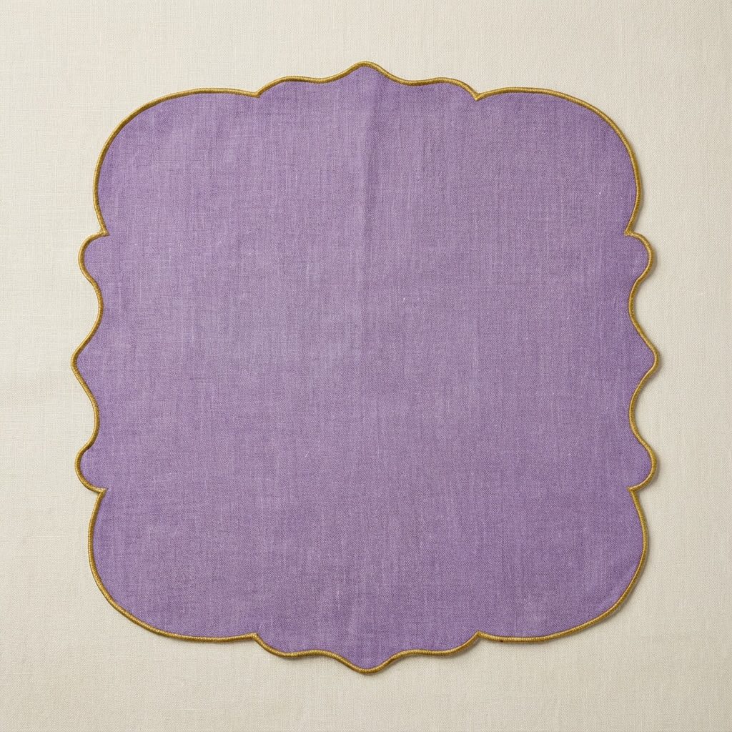 Die Leinenservietten Scalloped in Flieder verleihen deiner Tischdekoration eine romantische und gleichzeitig elegante Ausstrahlung. Der sanfte Fliederton kombiniert mit den zarten, gewellten Rändern (Scalloped Edge) sorgt für eine edle und doch verspielte Atmosphäre. Ideal für Hochzeiten, Gartenpartys, Vintage-Feiern oder gehobene Events, bei denen auf Details geachtet wird.