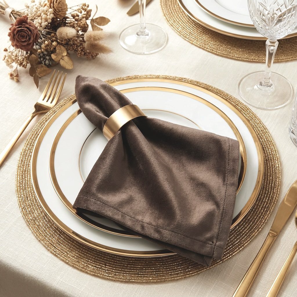 Die weiche Textur des Samtstoffes und die edle Verarbeitung machen diese Serviette zu einem absoluten Highlight auf jedem gedeckten Tisch. Die Farbe Iced Coffee harmoniert ideal mit goldenen Akzenten, rustikalen Holzmaterialien oder schlichten, modernen Tischdekorationen.