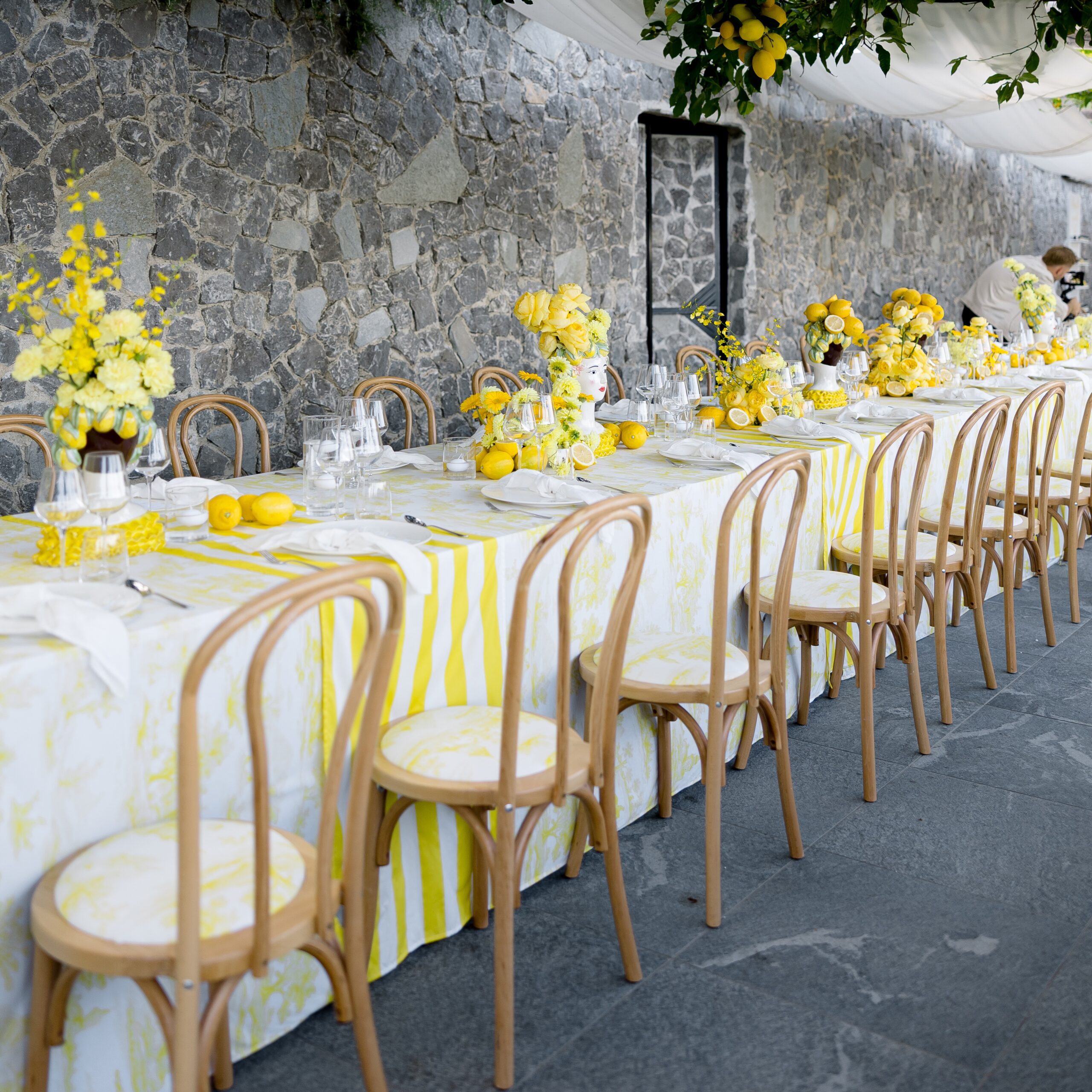 Der Tischläufer Stripes (250×50 cm) aus hochwertiger Baumwolle verwandelt jede Tafel in ein sonniges Highlight. Das klassische gelb-weiß-gestreifte Muster bringt sofortige Dynamik und eine freundliche Atmosphäre in dein Event-Setting – ideal für Gartenhochzeiten, maritime Events und moderne Dinner-Abende.